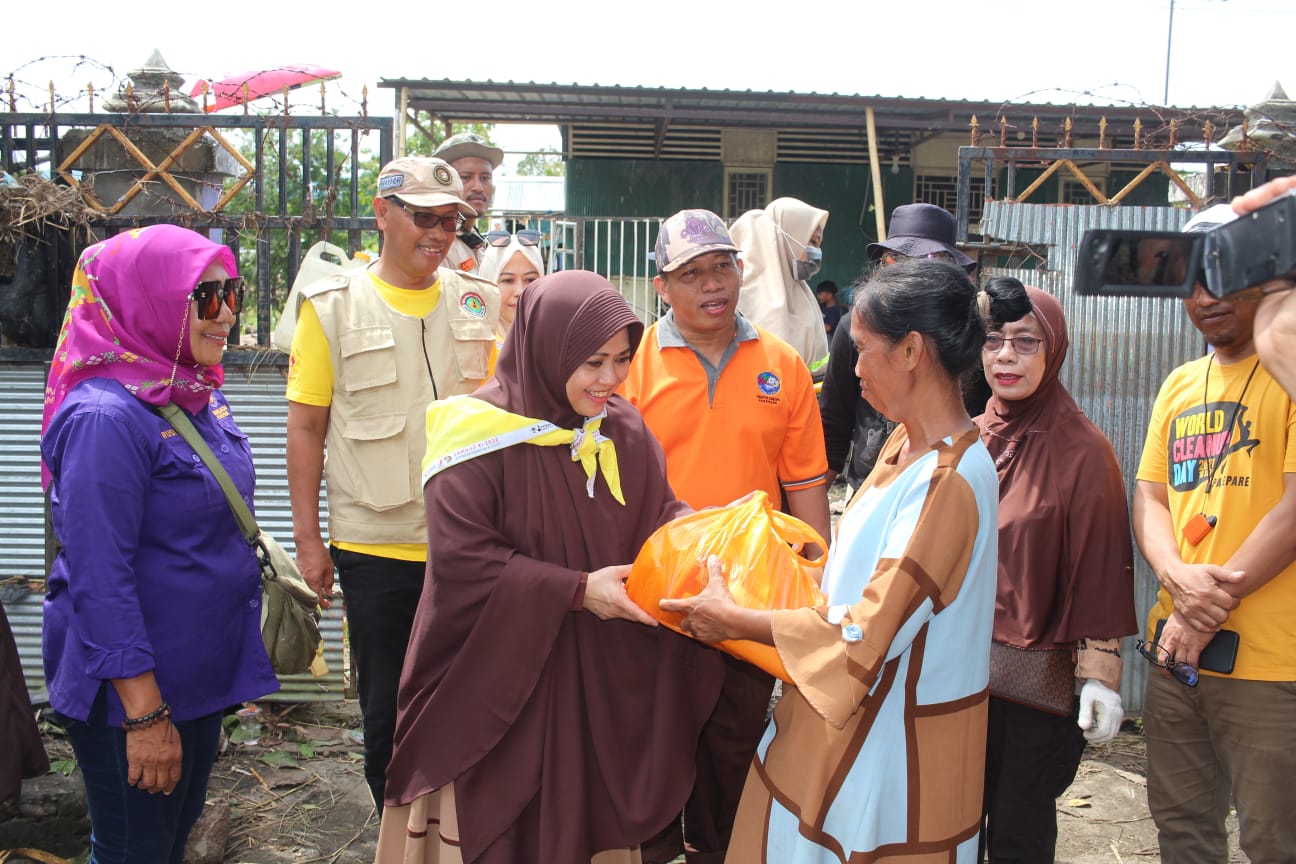 “Mar kita berusaha meminimalkan banjir dengan tidak membuang sampah di sembarang tempat,” pesan Istri Taufan Pawe (TP) ini.